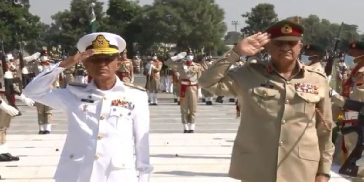 ایڈمرل امجد خان نیازی نے جی ایچ کیو کے دورے کے دوران وہاں واقع یادگارِ شہداء پر پھول رکھے اور فاتحہ خوانی کی۔