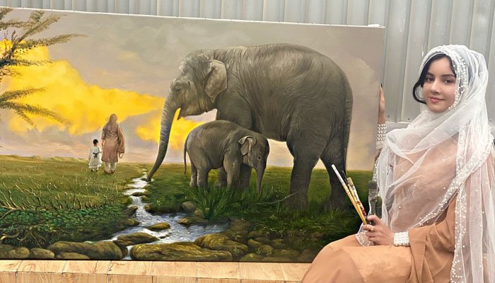 رابی پیرزادہ نے پینٹنگ مکمل ہونے پر اللّہ تعالیٰ کا شکر ادا کرتے ہوئے کہا کہ ’الحمداللّہ ایک اور پینٹنگ مکمل، اب جلد ہی انٹرنیشنل پلیٹ فارم پر پاکستان کو متعارف کراؤں گی۔‘