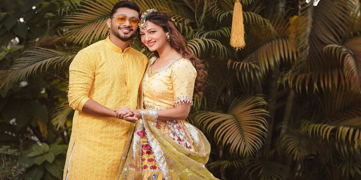 گوہر خان کی جانب سے پوسٹ کی جانے والی تصاویر میں دیکھا جا سکتا ہے کہ گوہر خان نے پیلے رنگ کا خوبصورت لہنگا اور چولی پہن رکھی تھی جب کہ زید دربار نے بھی پیلے رنگ کا چکن کاری کرتہ پہنا ہوا تھا۔