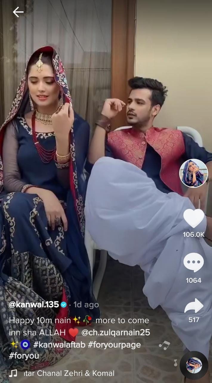 ٹک ٹاک اسٹار کنول آفتاب نے ویڈیو شیئر کرتے ہوئے کیپشن میں لکھا کہ ’میں ٹک ٹاک پر آپ کے 10ملین فالوورز ہونے پر بہت خوش ہوں، انشاءاللّہ آپ کو مزید کامیابیاں بھی ملیں گی۔‘
