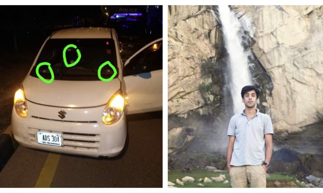 پولیس کے مطابق گاڑی کی ونڈ اسکرین ،دونوں سائیڈز اور پیچھے بھی گولیوں کے نشان ہیں۔