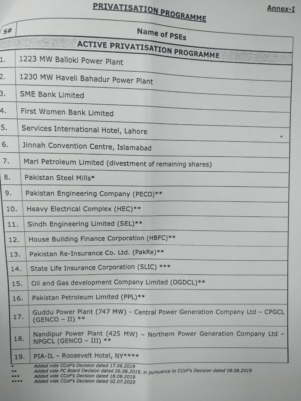 یاد رہے کہ ترمیم شدہ نجکاری فہرست اس سے قبل 19 ادارے شامل تھے ۔
