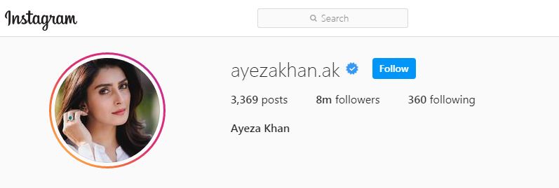پاکستان شوبز انڈسٹری کی خوبرو ورسٹائل اداکارہ عائزہ خان نے انسٹاگرام پر 8  ملین فالوورز  کا سنگ میل کامیابی سے عبور کر لیا ہے۔