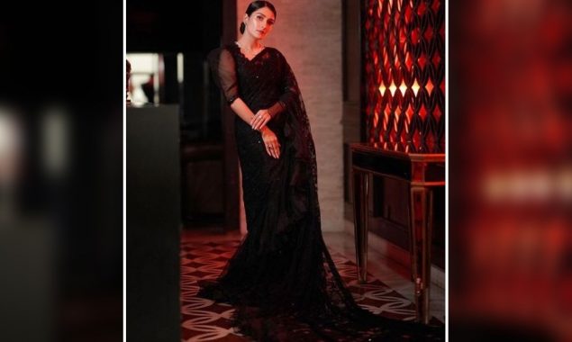 اداکارہ کی جانب سے پوسٹ کی جانے والی تصویر میں دیکھا جا سکتا ہے کہ وہ سیاہ رنگ کی ساڑھی زیب تن کی ہوئی ہیں جو ان کی خوبصورتی میں مزید اضافہ کر رہا ہے۔