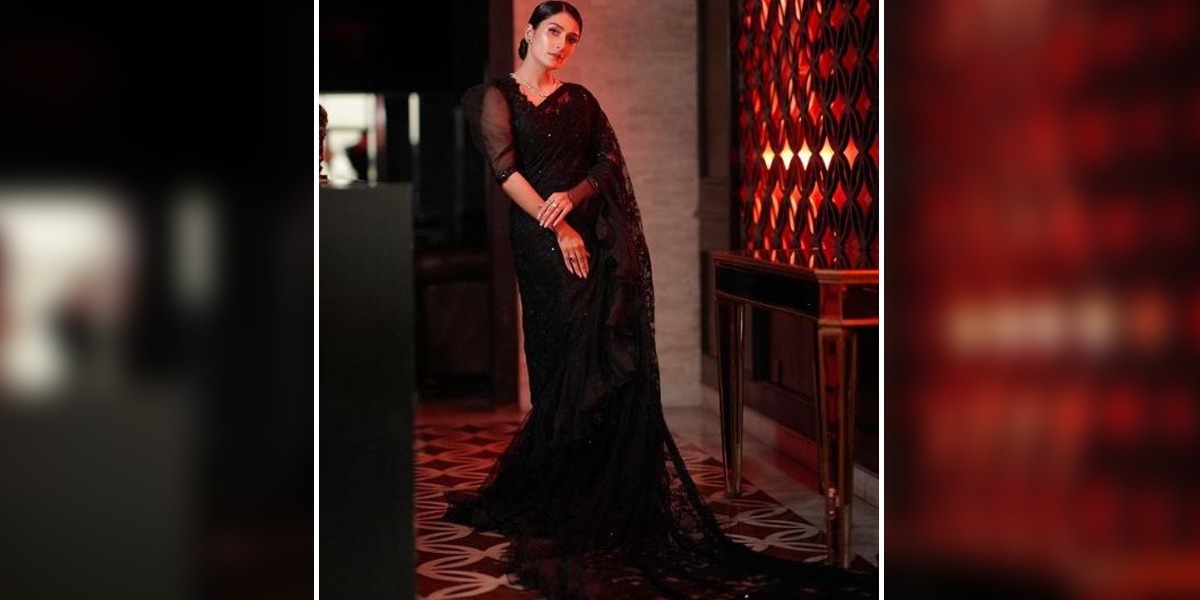 اداکارہ کی جانب سے پوسٹ کی جانے والی تصویر میں دیکھا جا سکتا ہے کہ وہ سیاہ رنگ کی ساڑھی زیب تن کی ہوئی ہیں جو ان کی خوبصورتی میں مزید اضافہ کر رہا ہے۔