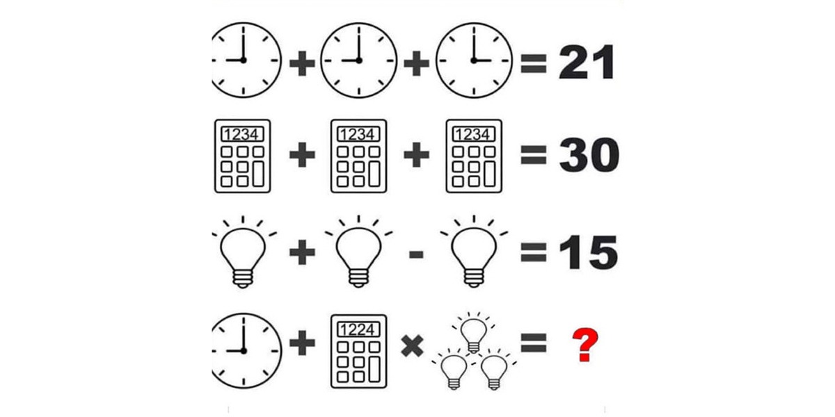 درج ذیل تصویر میں آپ کو چار لائنوں میں مختلف تصاویر بنی نظر آرہی ہوں گی جیسے پہلی تصویر میں تین گھڑیاں ہیں جن پر نظر آنے والے ٹائم کو اگر جمع کریں تو 21 کے برابر بنتا ہے۔
