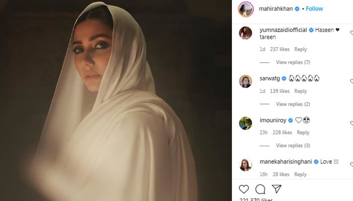 ماہرہ خان کی تصاویر کو مشہور شخصیات سمیت 2لاکھ 20 ہزار سے زائد افراد نے پسند کیا اور انہیں سکیڑوں تعریفی کمنٹس بھی لکھے۔
