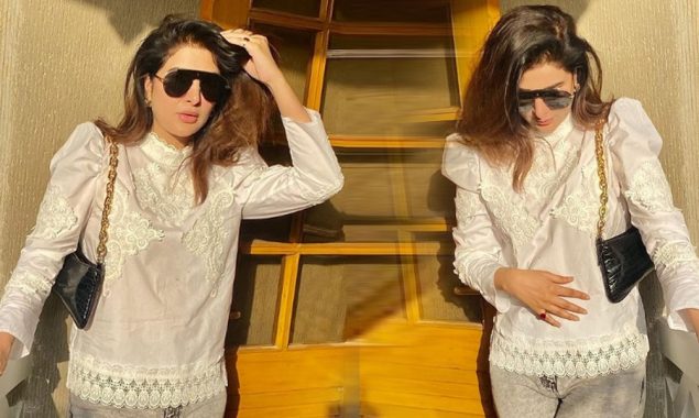 اریبہ حبیب کی جانب سے پوسٹ کی جانے والی تصاویر میں دیکھا جا سکتا ہے کہ وہ سفید رنگ کی شرٹ زین تن کی ہوئیں ہیں ساتھ ہی اداکارہ نے اس تصویر کی کیپشن میں اپنے اس لباس کو پسندیدہ لباس کہا ہے۔