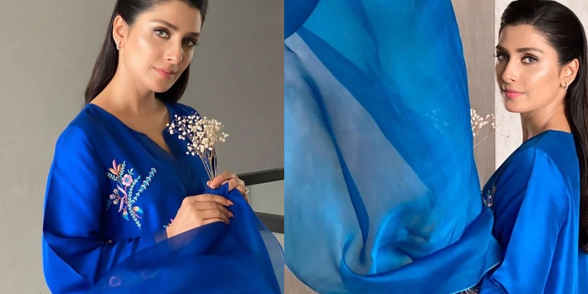 اداکارہ کی جانب سے پوسٹ کی جانے والی تصاویر میں دیکھا جا سکتا ہے کہ وہ نیلے رنگ کا لباس زیب تن کی ہوئی ہیں جو ان کی خوبصورتی میں مزید اضافہ کر رہا ہے۔