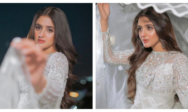 اداکارہ حرا مانی کے نئے فوٹو شوٹ کی تصاویر میں دیکھا جا سکتا ہے کہ انہوں نے سفید رنگ کا لباس زیب تن کیا ہوا ہے۔