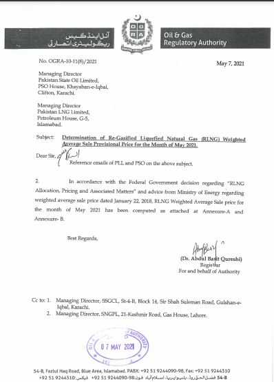 اوگرا کی جانب سے مئی کے لئے ایل این جی کی قیمتوں میں اضافہ کردیا گیا ہے۔