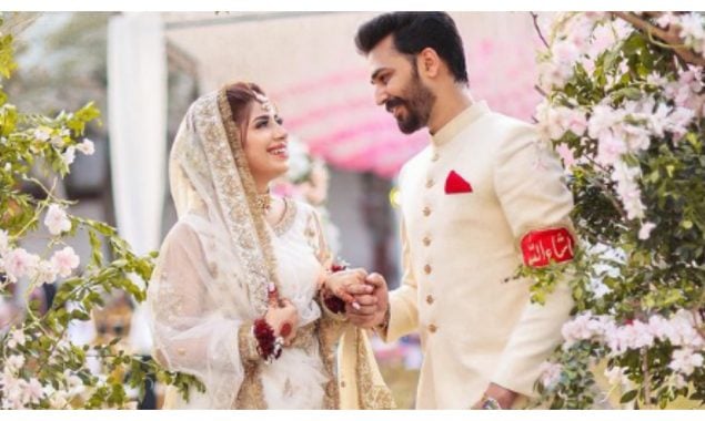 عاشی اعوان کے دوپٹے پر ’مکرّم کی دلہن‘ لکھا ہوا ہے۔
