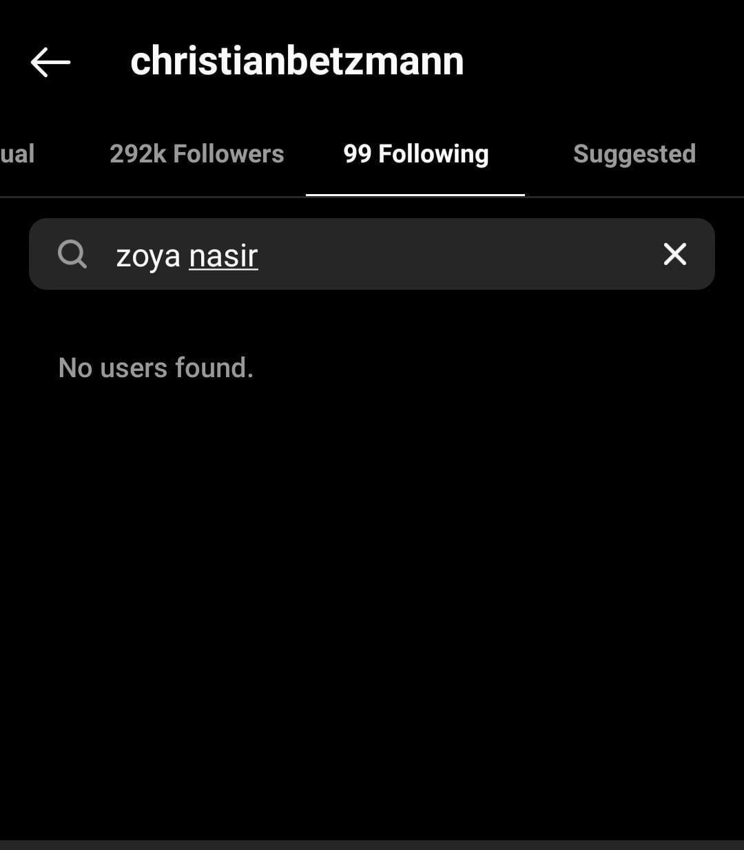 زویا ناصر نے فوٹو اینڈ ویڈیو شیئرنگ ایپ انسٹاگرام پر کہا تھا کہ میں بہت ہی دکھ کے ساتھ یہ اعلان کر رہی ہوں کہ میرا اور کرسچین بیٹزمین کا اب مزید کوئی تعلق نہیں ہے۔