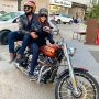 اس تصویر میں دیکھا جاسکتا ہے کہ عمیر جسوال ہیلمٹ پہن کر پیچھے بیٹھے ہیں جبکہ ثنا کیپ پہنے آگے بیٹھی ہیں۔