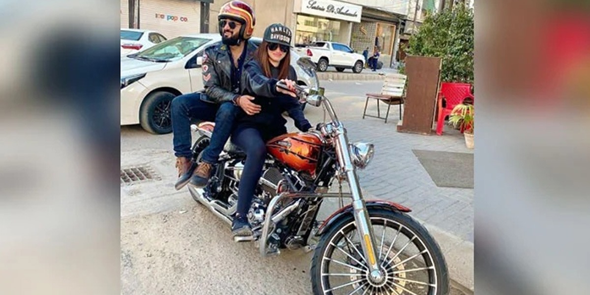 اداکارہ ثنا جاوید نے انسٹاگرام پر اپنے شوہر عمیر جسوال کے ساتھ موٹر سائیکل کی سواری کی اور اس کی ایک تصویر بھی سوشل میڈیا پر شیئر کی ہے۔