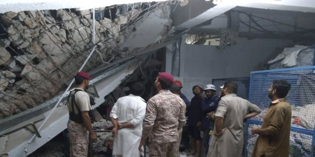 کراچی: کنٹینر کی ٹکر سے فیکٹری کی چھت گر گئی