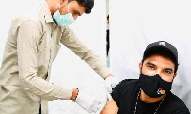یاسر نے کورونا وائرس ویکسین کراچی کے آرٹس کونسل میں لگوائی۔