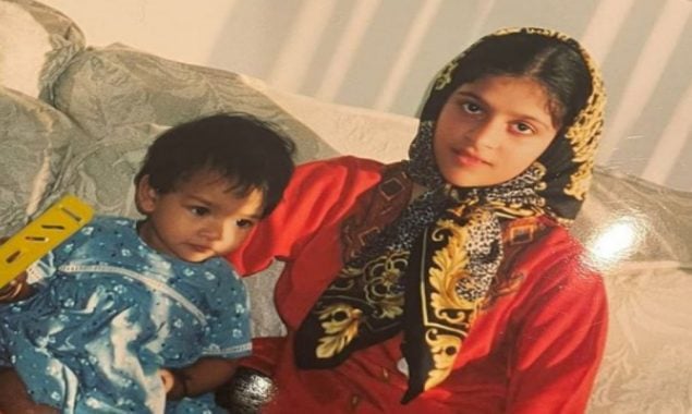 خال ہی میں اریج فاطمہ کے انسٹاگرام اکاؤنٹ کے ذریعے ان کی پچپن کی ایک یادگار تصویر شیئر کی گئی تھی جس میں وہ لال فراک اور کالے رنگ کا اسکارف پہنی ہوئی ہیں۔