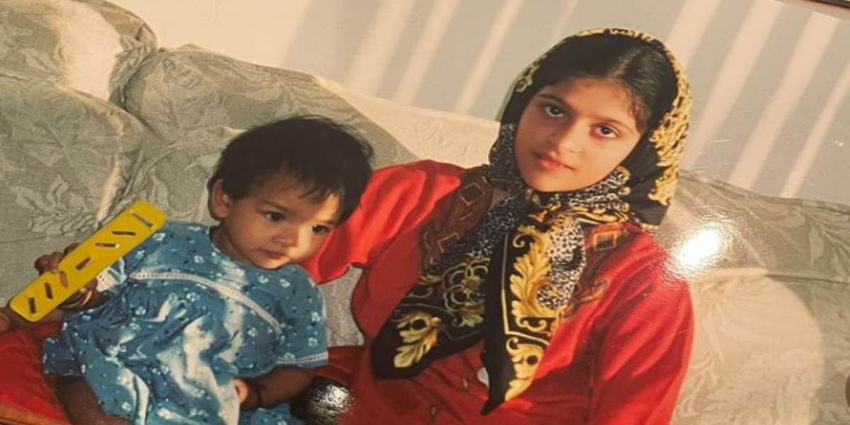خال ہی میں اریج فاطمہ کے انسٹاگرام اکاؤنٹ کے ذریعے ان کی پچپن کی ایک یادگار تصویر شیئر کی گئی تھی جس میں وہ لال فراک اور کالے رنگ کا اسکارف پہنی ہوئی ہیں۔