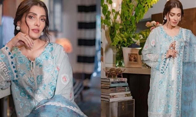 انسٹاگرام پر پوسٹ کی جانے والی تصویر میں دیکھا جا سکتا ہے کہ اداکارہ فیروزی رنگ کا لباس زیب تن کی ہوئی ہیں۔
