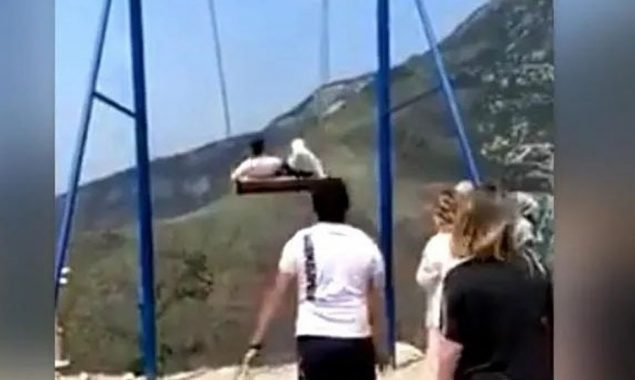 اس پہاڑ کی بلندی تقریباً 6 ہزار فٹ ہے جہاں سیروتفریح کے غرض سے فیملی موجود تھی اس دوران دو خواتین نے جھولا جھولنے کا فیصلہ کیا۔