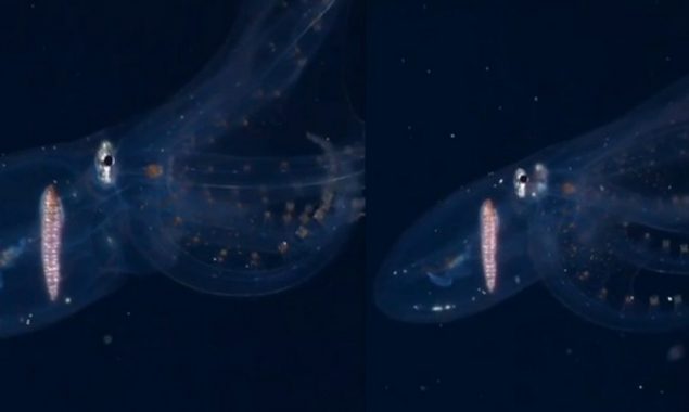 تفصیلات کے مطابق پانی میں خاموشی سے حرکت کرتے اس آکٹوپس کی جلد بالکل شفاف ہے اور اس ناقابل یقین سمندری مخلوق کو دیکھنا بڑا ہی حیران کن ہے۔