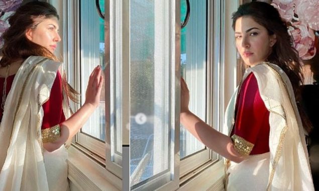 نیمل خاور نے اپنی سفید ساڑی میں ملبوس چند دلکش تصاویر انسٹاگرام اکاؤنٹ پر شیئر کی ہیں۔