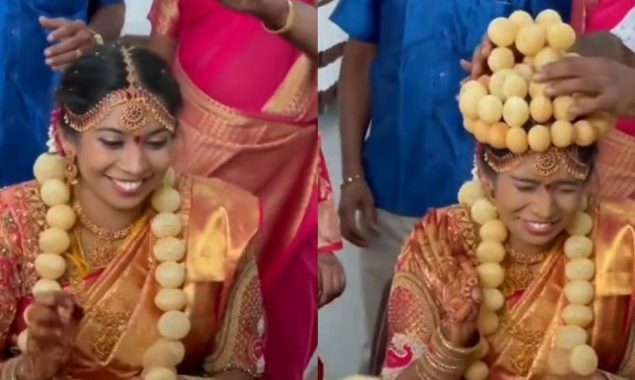 غیر ملکی خبر رساں ادارے کے مطابق سر پر گول گپوں کا تاج سجائے، ہاتھ اور گلے میں گول گپے کے زیور پہنے ہوئے اس دلہن کی ویڈیو سوشل میڈیا پر وائرل گئی ہے جسے دیکھ کر صارفین خوب محظوظ ہورہے ہیں۔