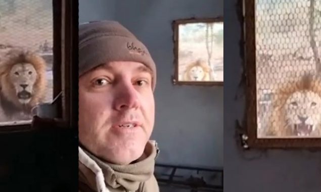 جنوبی افریقا میں گھومنے کی غرض سے ایک کیمپ میں قیام کرنے والے شخص کو صبح سویرے کچن کی کھڑکی کھولتے ہی دھاڑتے شیر سے سامنا ہوگیا جس کی ویڈیو وائرل ہوگئی ہے۔