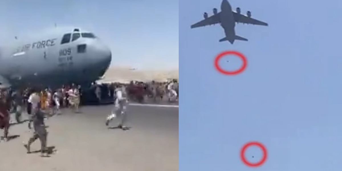 غیر ملکی خبر رساں ادارے کی رپورٹ کے مطابق افغان دارالحکومت کابل سے اڑان بھرنے والے امریکی جہاز کے انجن، پروں اور ٹائروں پر مقامیوں نے اپنی جگہ بنانے کی کوشش کی ،رن وے پر متعدد افغانیوں کو طیارے سے لٹکتے ہوئے دیکھا گیا اور دوران پرواز بدقسمتی سے تین باشندے توازن کھونے کے باعث گرگئے۔