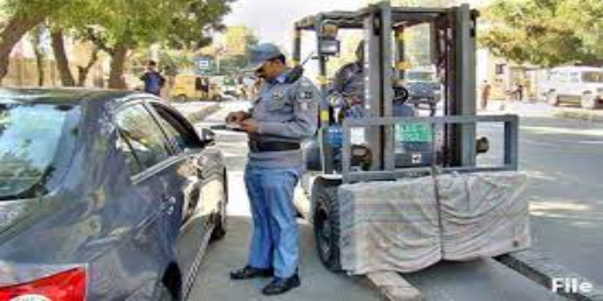 ٹریفک قوانین کی خلاف ورزی کرنے والی گاڑی کو دھر لیا گیا
