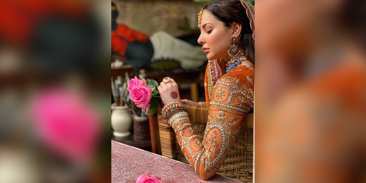ہانیہ عامر کی جانب سے پوسٹ کی جانے والی تصویر میں دیکھا جا سکتا ہے کہ اداکارہ نے ہ اورنج رنگ کا لباس زیب تن کی ہوئی ہیں جو ان کی خوبصورتی میں مزید چار چاند لگا رہا ہے۔