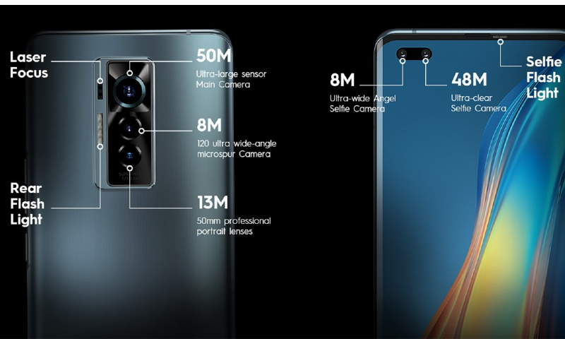 فون کا مین کیمرا 50 میگا پکسل کا ہے جس میں 1/1/3 انچ سنسر دیا گیا ہے ، یہ ڈوئل پکسل سنسر ہے جس میں لیزر آٹوفوکس کا فیچر بھی موجود ہے۔