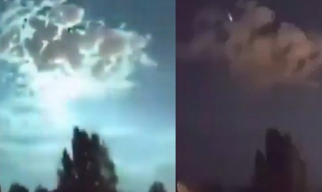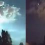 اس ویڈیو میں دیکھا جاسکتا ہے کہ آسمان سے ایک گولہ تیزی سے زمین کی طرف بڑھ رہا لیکن اچانک اس میں سبز رنگ کی آگ بھڑک اٹھتی ہے اور آسمان پر سبز رنگ چھا جاتا ہے۔