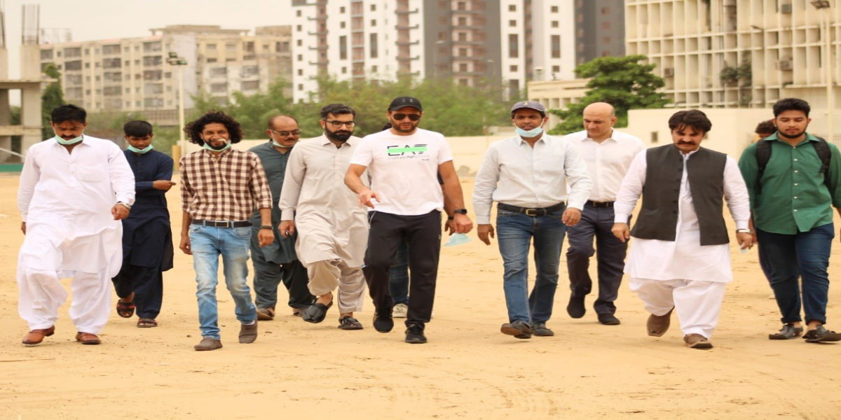 سابق کپتان شاہد آفریدی نے گلشن اقبال بلاک چھ میں زیر تعمیر کرکٹ گراؤنڈ کا دورہ کیا ، ارسلان تاج
