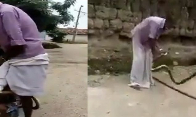 تفصیلات کے مطابق مذکورہ واقعہ بھارت میں پیش آیا جہاں ایک شہری کی ٹانگوں سے سانپ لپٹ گیا اور اس نے دوسرے شخص کی مدد سے ہٹا کر سانپ کو مارڈالا۔