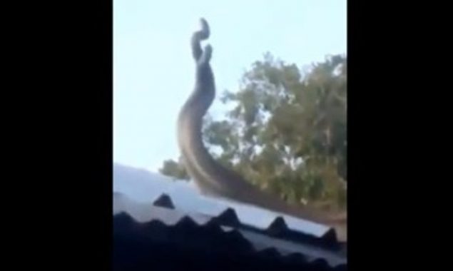 وائرل ہونے والی ویڈیو میں دو سانپوں کو ایک شخص کے گھر کی چھت پر ایک دوسرے پر لپٹتے دیکھا جاسکتا ہے۔