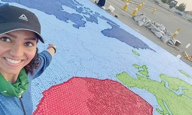سعودی عرب میں ایک خاتون نے پلاسٹک کی بوتلوں کے ڈھکنوں سے دنیا کے نقشے کا سب سے بڑا موزیک بناکر اپنا نام گنیز ورلڈ ریکارڈ میں شامل کرالیا ہے۔