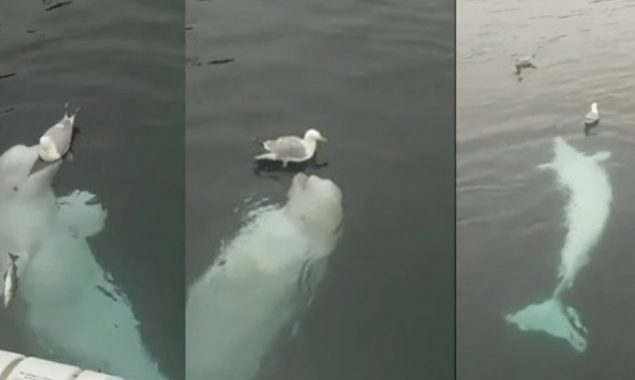 بیلوگا وہیل کی سیگل کے ساتھ کھیلنے کی ویڈیو سوشل میڈیا پر وائرل وہ گئی۔