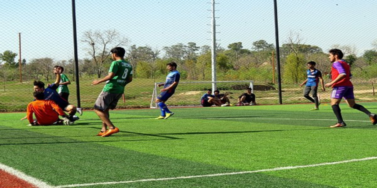 فٹبال گراؤنڈ کی آسٹرو ٹرف فیفا کی جانب سے منظور شدہ ہے۔