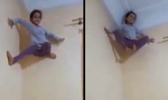 ایک بچی اسپائیڈر مین کی طرح سیکنڈوں میں دیوار پر چڑھ گئی جس کی ویڈیو سوشل میڈیا پر وائرل ہوگئی۔