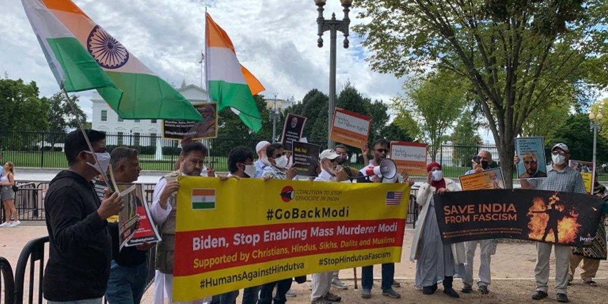 احتجاج میں بھارتی امریکیوں نے جو بائیڈن سے مطالبہ کیا ہے کہ بھارتی رہنما وں کو حقوق کی خلاف ورزیوں اور مذہبی آزادی پر جوابدہ بنائے۔