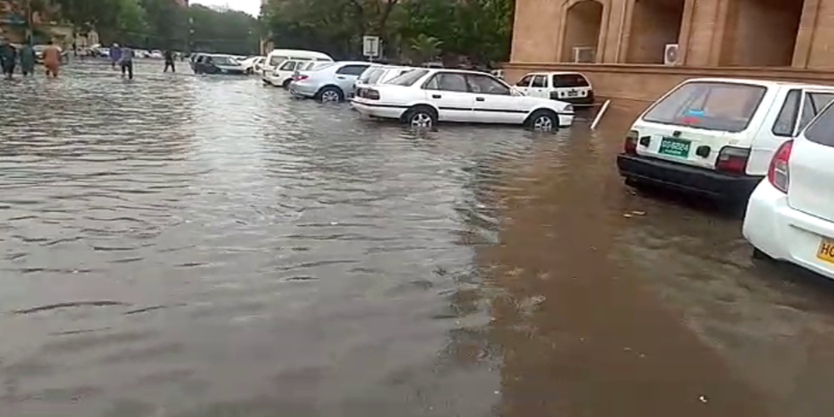 شہرقائد میں ہوئی حالیہ بارشوں کے باعث سٹی کورٹ سے بارش کا پانی تاحال نہیں نکالا جا سکا ہے۔