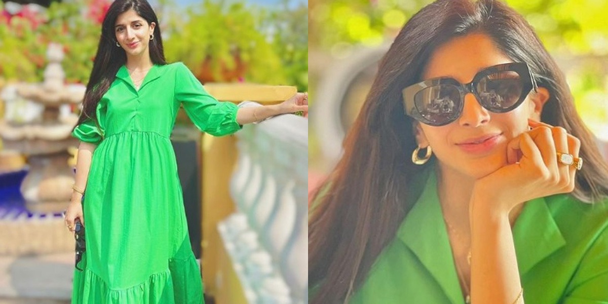 ماورہ حسین کی جانب سے پوسٹ کی جانے والی تصاویر میں دیکھا جا سکتا ہے کہ اداکارہ سبز رنگ کا لباس زیب تن کی ہوئی ہیں۔