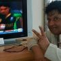 شیئر کی گئی تصویر میں عُمر شریف کو ٹی وی اسکرین کے پاس دیکھا جاسکتا ہے جس پر پاکستان کا میچ نشر ہو رہا ہے۔