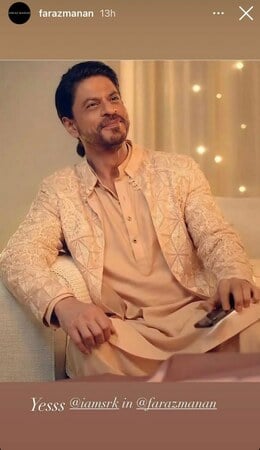 سوشل میڈیا رپورٹس کے مطابق اس سے پہلے بالی ووڈ اسٹار شاہ رخ خان کوکسی بھی پاکستانی ڈیزائنر کا جوڑا پہنے نہیں دیکھا گیا۔