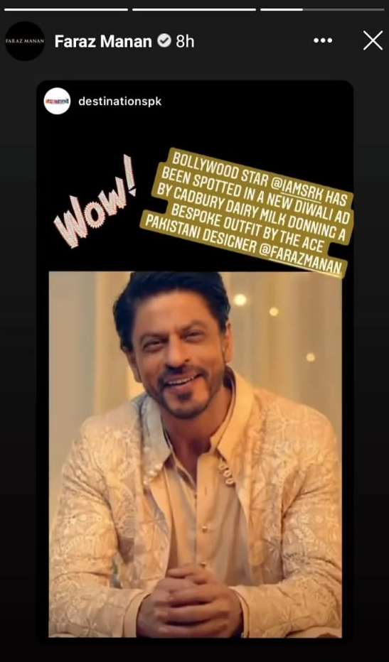 شاہ رخ خان کا دیوالی کےاشتہار کےلئے پاکستانی ڈیزائنر کے جوڑے کا انتخاب