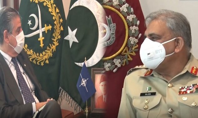 پاک فوج کے شعبہ تعلقات عامہ ( آئی ایس پی آر) کے مطابق آرمی چیف جنرل قمر جاوید باجوہ سے پاکستان کے دورے پر آئے ہوئے نیٹو کے سینئر سول نمائندے اسٹیفانو پونٹیکورونے جی ایچ کیو میں ملاقات کی۔
