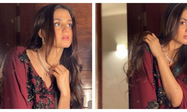ان تصاویر میں دیکھا جاسکتا ہے کہ اداکارہ حرا مانی نے مہرون رنگ کا لباس زیب تن کیا ہوا ہے۔