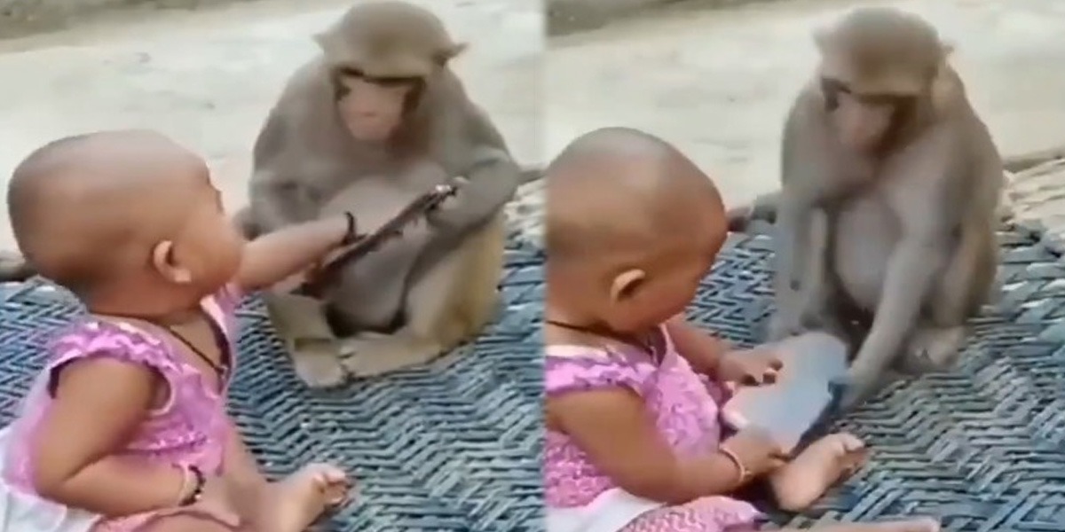 بندر کی اس حرکت پر بچی اسے غورتی ہے اور فون چھین لیتی ہے، بندر بھی پیچھے نہیں رہتا اور بچی سے دوبارہ فون چھین لیتا ہے۔